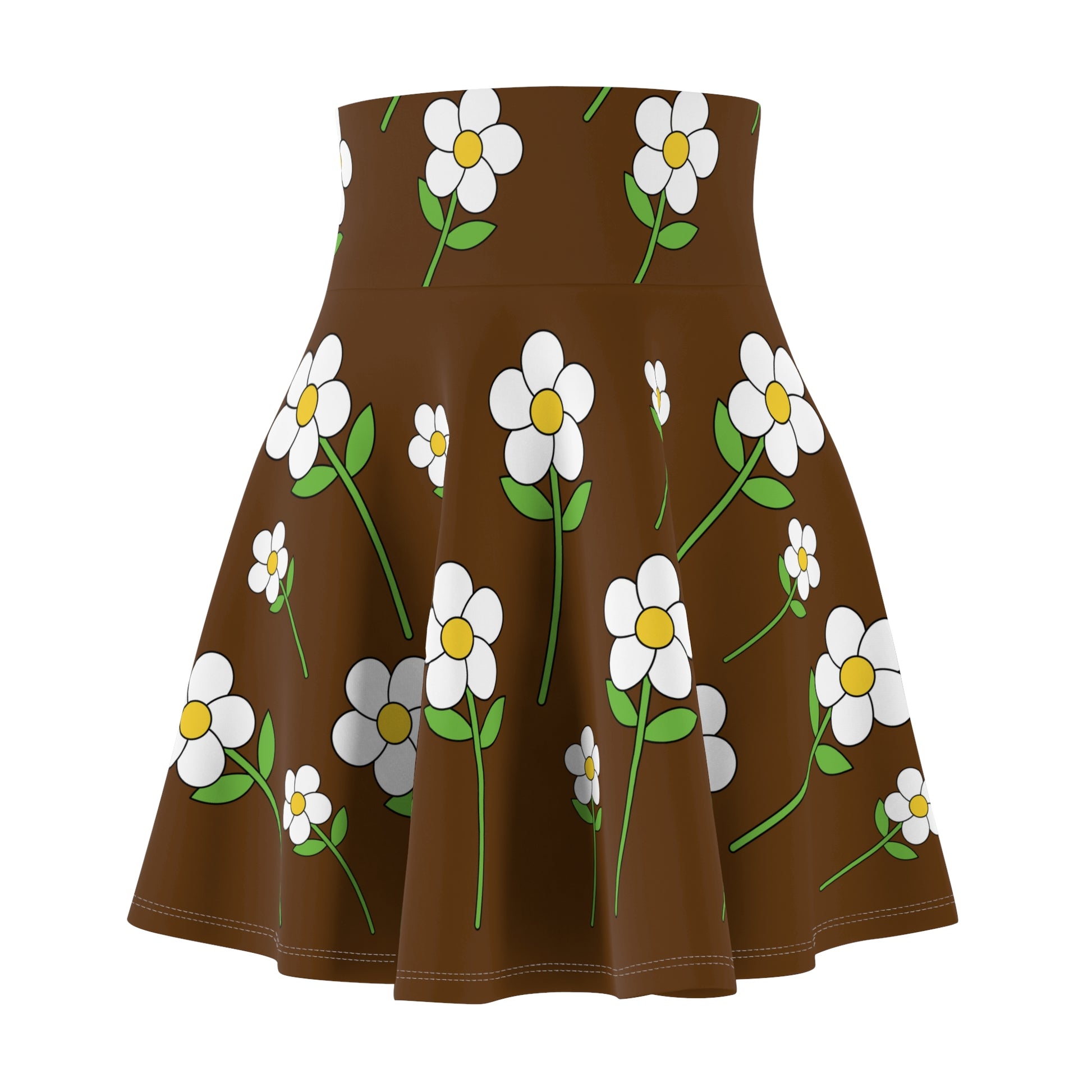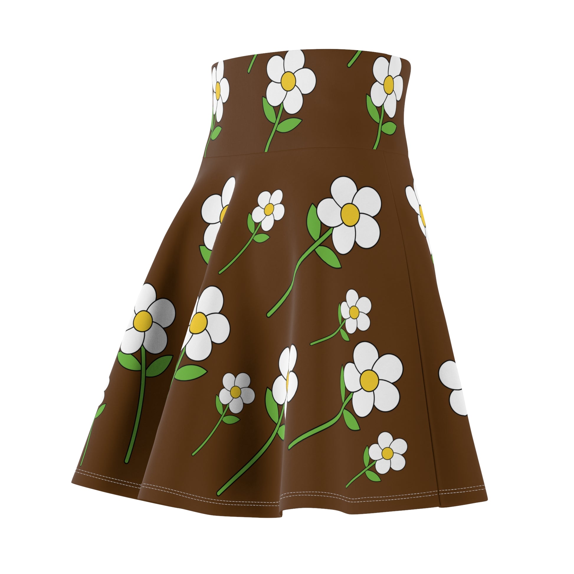 Daisy Flower Floral Flare Skater Skirt | BROWN